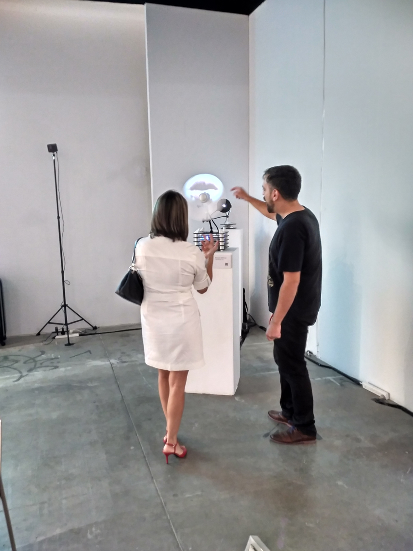 Martin Reiche’s work consists on a connective structure placed between two signals, that produces a systemic interference. By questioning its functionality, the piece emerges as a sculpture that reflects on the promise of a over connected world. José Sánchez also turns to negation. In his piece a fan, like a broken screen, attacks the eye causing its retreat to the blind labyrinth of the human body, allowing another constitution of the image. Ian Flitman’s algorithmic narration reflects on a language that oscillates between an absent writing, a speaking action and the potential definition of electronic as a diffuse path for self-constitution. PolakVanBekkum’s work is a landscape originated from both the interference and coupling of two different media estrategies, a binaural microphone and a gps. The spectator is shown into a virtual walk through a distorted scenario, caused by the cooperation and distance between both devices. Lastly, it shall be presented Arturo Moya’s work. His practice explores the violence and alienation of a word that vanishes through media. His work proposes a negative interactivity that forces the spectator to deny the work to enable its meaning.